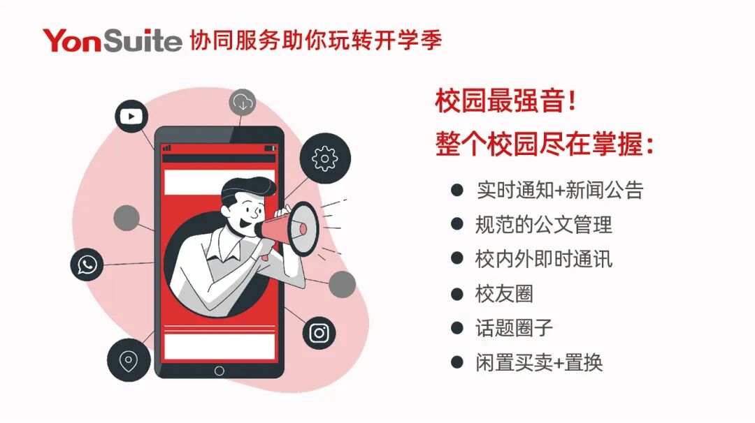 它是从学校管理到师生服务,从组织内协同到组织间协同,让教职员工和学生有组织归属感的信息交换平台;