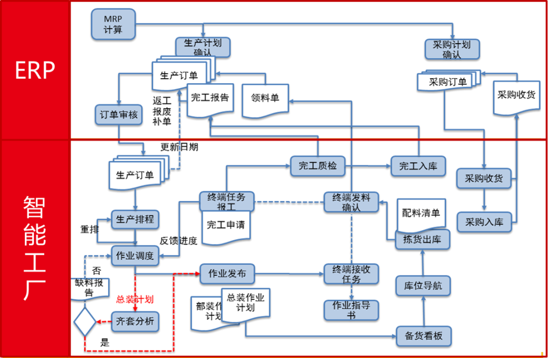 连通上层管理系统(ERP)与底层车间(操作终端与设备),实现生产数据透明化,生产过程精细化管理