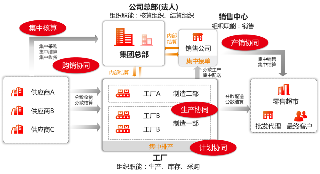 跨组织运行计划。集团负责规划各个销售公司的订单和生产计划,计划随时反应客户需求,并下达到各工厂