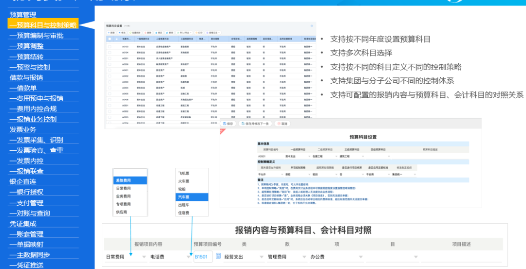 可以根据不同的组织,不同的费用类型,可组可分,互联互通,强弹性的预算业务方案可以更灵活地去支撑不同行业,不同规模的企业发展的不同的一个阶段。