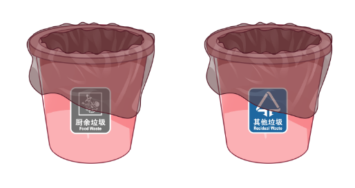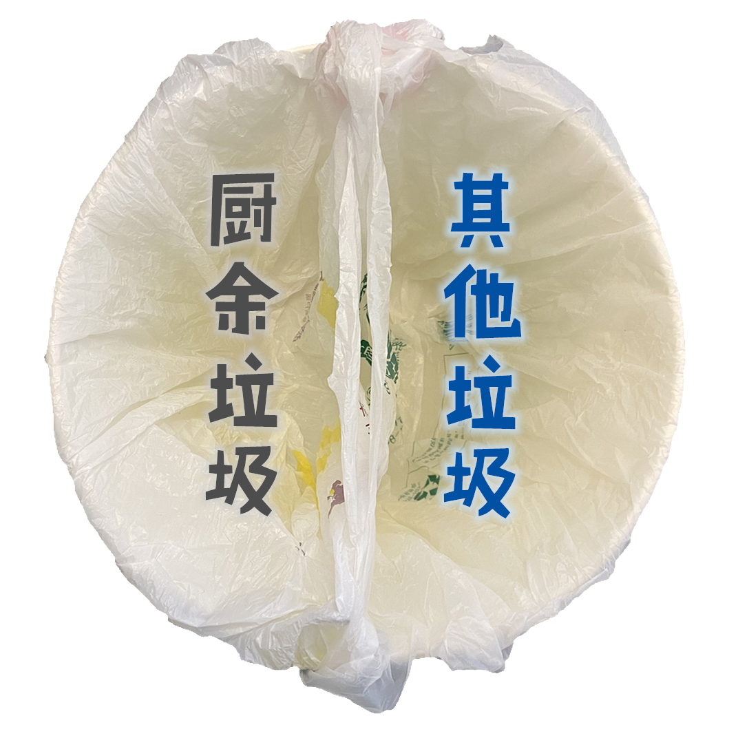 还有一种更聪明的办法,如果你的垃圾桶足够大,你还可以直接用两只塑料袋作为两个隔区,分别盛放其他垃圾和厨余垃圾,这样就不需要额外购置垃圾桶了。