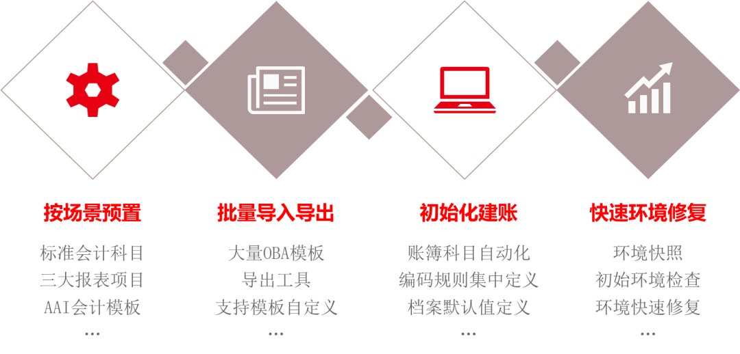 2、增加了多项预置数据和初始化建账功能等,提高企业上线效率;