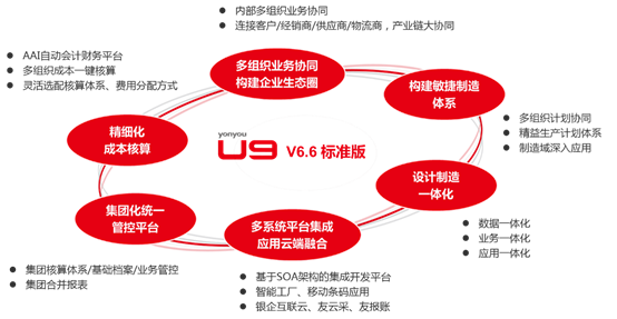 本次发布的U9 V6.6标准版为中小型制造企业提供多组织业务协同、精益制造和精细化成本核算的专业服务,为其快速成长和管理升级提供数智化动力。
